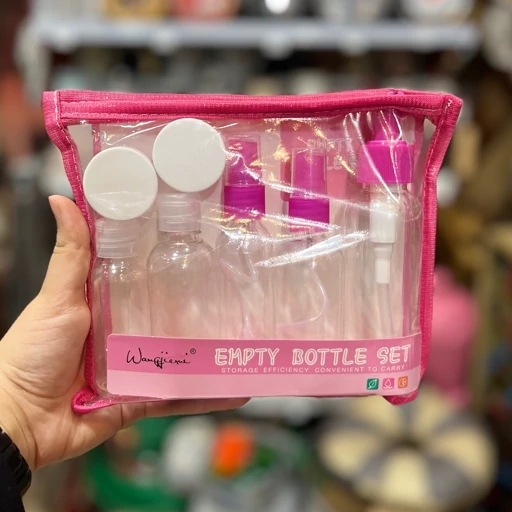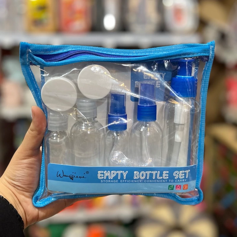 1 شوینده -2 اسپری - 2 ظرف کوچک -2 بطری به همراه کیف زیپی