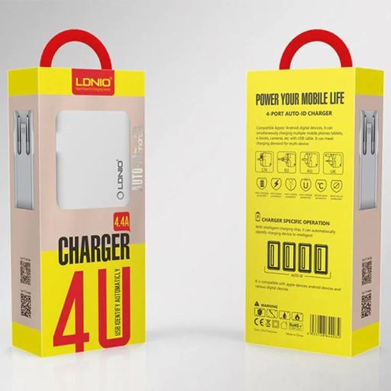 شارژر دیواری الدینیو مدل LDNIO A4403 قابلیت اتصال و شارژ 4 دستگاه به طور همزمان با هم را بدون حتی اندکی افت ولتاژ داشته و مانع از آسیب رسیدن به دیوایس کاربر می شود. شدت جریان خروجی این شارژر به طور همزمان 4.4 آمپر و شدت جریان ورودی آن حداکثر به 800 میلی آمپر می رسد. از نکات دیگری که این شارژر را بسیار محبوب کرده این است که دارای دو شاخه با قابلیت قرارگرفتن درون بدنه دارد و مانع از به هم ریختن فضای مورد استفاده می شود.