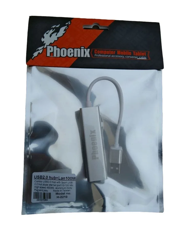 مبدل USB به LAN , HUB کومبو combo مدل فونیکس دارای کیفیت بالایی است. گاهی اوقات پیش می اید که کامپیوتر یا تبلت شما فاقد پورت شبکه باشد و یا پورت شبکه ان خراب شده باشدیکی از ویزگی های تبدیل یواس بی به لن است که به همراه پورت لن ۴ پورت USB2.0 دارد که به طور همزمان میتوانید سیستم خود را شبکه نمایید و یا مودم و …. را به پورت لن متصل نمایید و همچنین فلش مموری و پرینتر و موس و کیبرد و هارد اکسترنال به ان متصل نمایید.